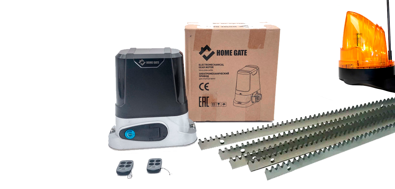 Комплект для откатных ворот HOME GATE LTM 800 light (Wi-Fi) + рейка 5 шт + фотоэлементы + лампа